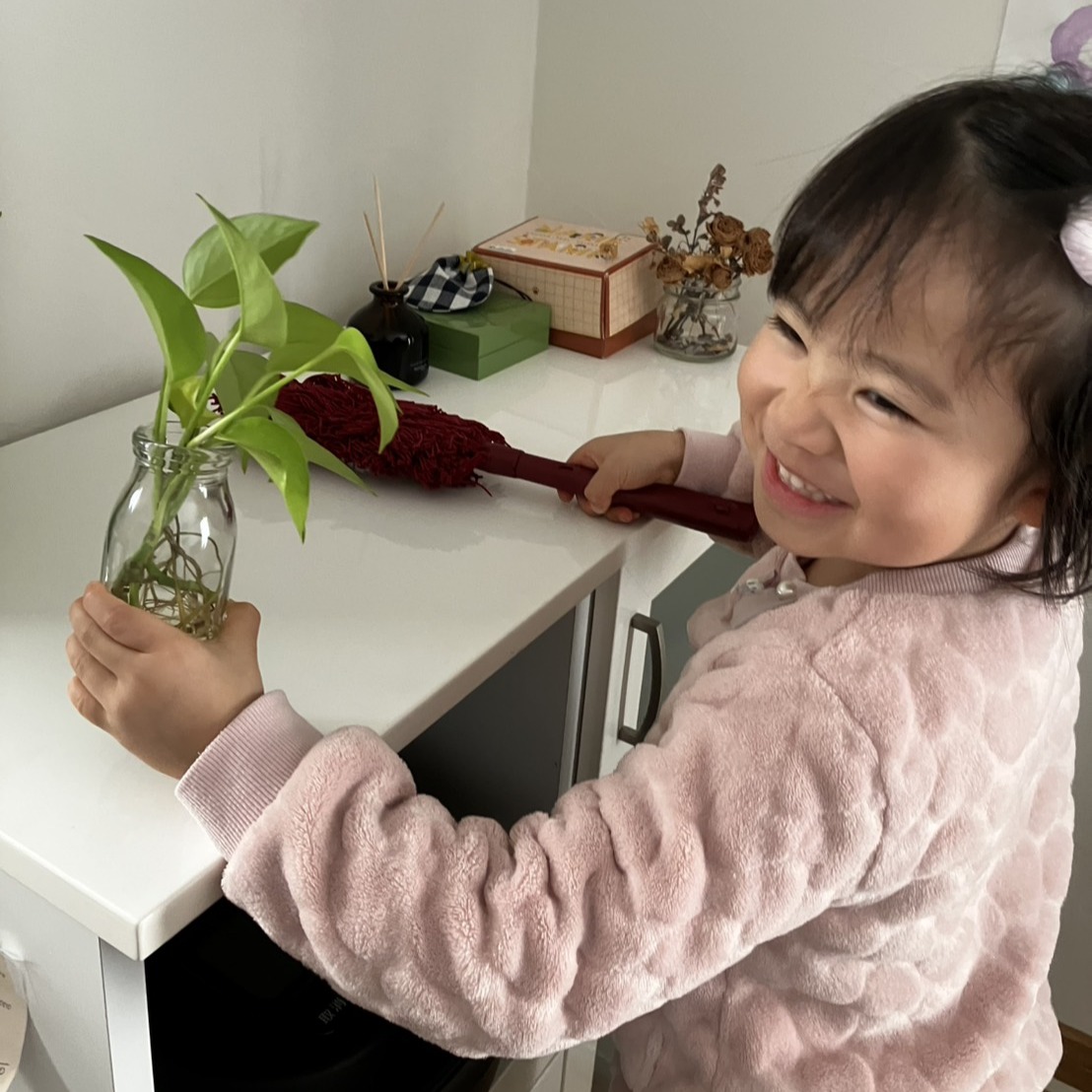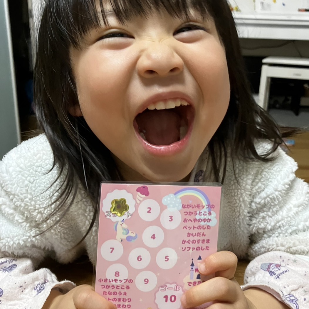 同じ頃 ひと足お先にキッズモップでのお掃除を体験させてもらった5歳の娘